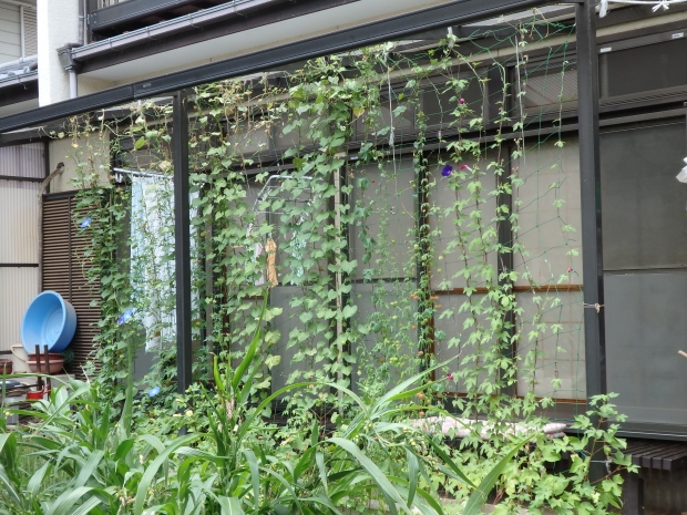 今、見ごろを迎えているのは、 朝顔、綿などアオイ科の花、ふうせんかずらには、小さな花とまん丸の風船、オクラやなす、トマトを毎日収穫しています。朝顔の花で色水作りをしたり、花びらのシャボン玉をしたりと、遊んだり、収穫などのお手伝いをしながら、豊かなお庭を満喫しています。 春に芽吹いたじゅず玉の葉っぱは空へと伸び、まもなく実りの時を迎えます、かぜのぬけるさわやかな庭には、お隣からお隣へと蝶がやってきます。ローズマリーやバジルなどハーブのいいにおいも子どもたちの楽しみです。